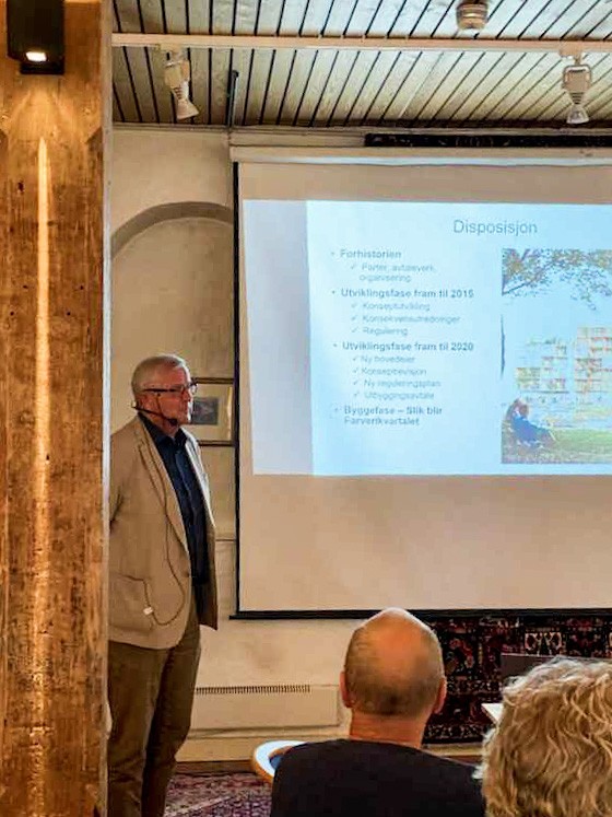 Farverikekvartalet. Han redegjorde for utviklingen av prosjektet fra 2005 til i