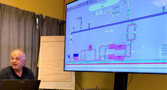 Mange medlemmer var samlet til bedriftsbesøk på Gjøvik Vannverk på Engelandsodden den 1. september. Ingeniør ved vannverket, Roar Bustebakke, ga en grundig orientering om driften, - og til slutt omvisning i renseanlegg og tekniske rom.