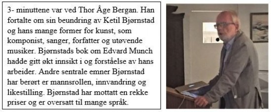 Gjøvik Rotaryklubb har innført et nytt programinnslag. Fra tid til annen skal vi få såkalte mini-egoforedrag. Medlemmer som har vært med i klubben noen år vil fortelle om sine liv. På den måten vil yngre medlemmer bli bedre kjent med seniorene.