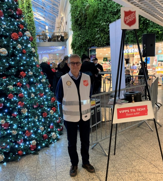 For Gjøvik Rotaryklubb er det blitt en tradisjon at medlemmene stiller opp som vakt ved julegryta, - både på Falch-hjørnet og kjøpesenteret CC. Alle som gir skal vite at innsamlede midler går til å hjelpe trengende i vårt lokalmiljø.