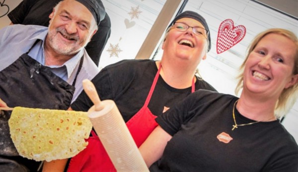 PULS Ditt Værested på Kirkeby er et treffested og en kafe som drives av Frelsesarmeen. Alt de serverer der er glutenfritt, og en dag som Ragnar var innom kafeen kom ideen opp om det kunne være av interesse å arrangere baking av glutenfrie lomper? Det var det så absolutt, og med Ragnar som læremester og erfaring fra egen bedrift med nettopp glutenfrie produkter var veien kort til at torsdagene ble fast bakedag på Puls.