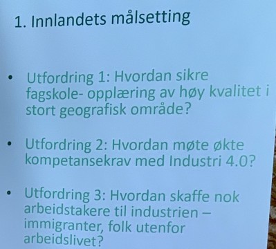 Det er listet opp 3 utfordringer som fylkeskommunen over tid må bidra med å løse. Fagskoler og opplæring er et av de viktigste utfordringene.