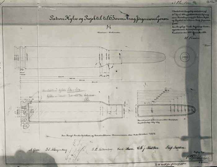 For de med teknisk-historisk interesse, kan en her også studere den originale tegningen av hvordan Krag Jørgensen patronen var konstruert på slutten av 1800-tallet.