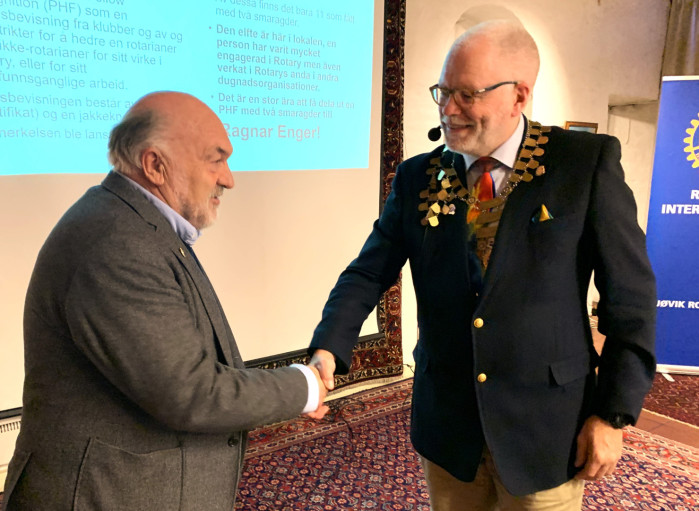 Paul Harris Fellow Recognition (PHF) er en hedersbevisning som ble stiftet av Rotary i 1957. Æresbevisningen består av et diplom og en jakkeknapp. Den tildeles rotarianere eller ikke-rotarianere som har utmerket seg med sin innsats for Rotary eller annet samfunnsganglig arbeid. Guvernøren viste til at denne hedersbevisningen henger svært høyt. Hittil er det kun et fåtall som har fått PHF med 2 smaragder. 13. november 2025