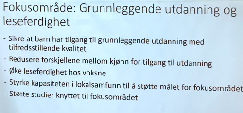 Presidenten har fokus på Rotary og satte særskilte søkelys på den interessante innsatsen Rotary har gitt på grunnleggende utdanning og leseferdigheter. Disse ferdighetene har stor innvirkning på det livet folk lever. Han trakk frem jenteskolen i Afghanistan som et av mange gode eksempler på hva Rotary har fått til. På Rotary sine hjemmesider kan man se hva vi bidrar med for barn, voksne, kvinner og menn.