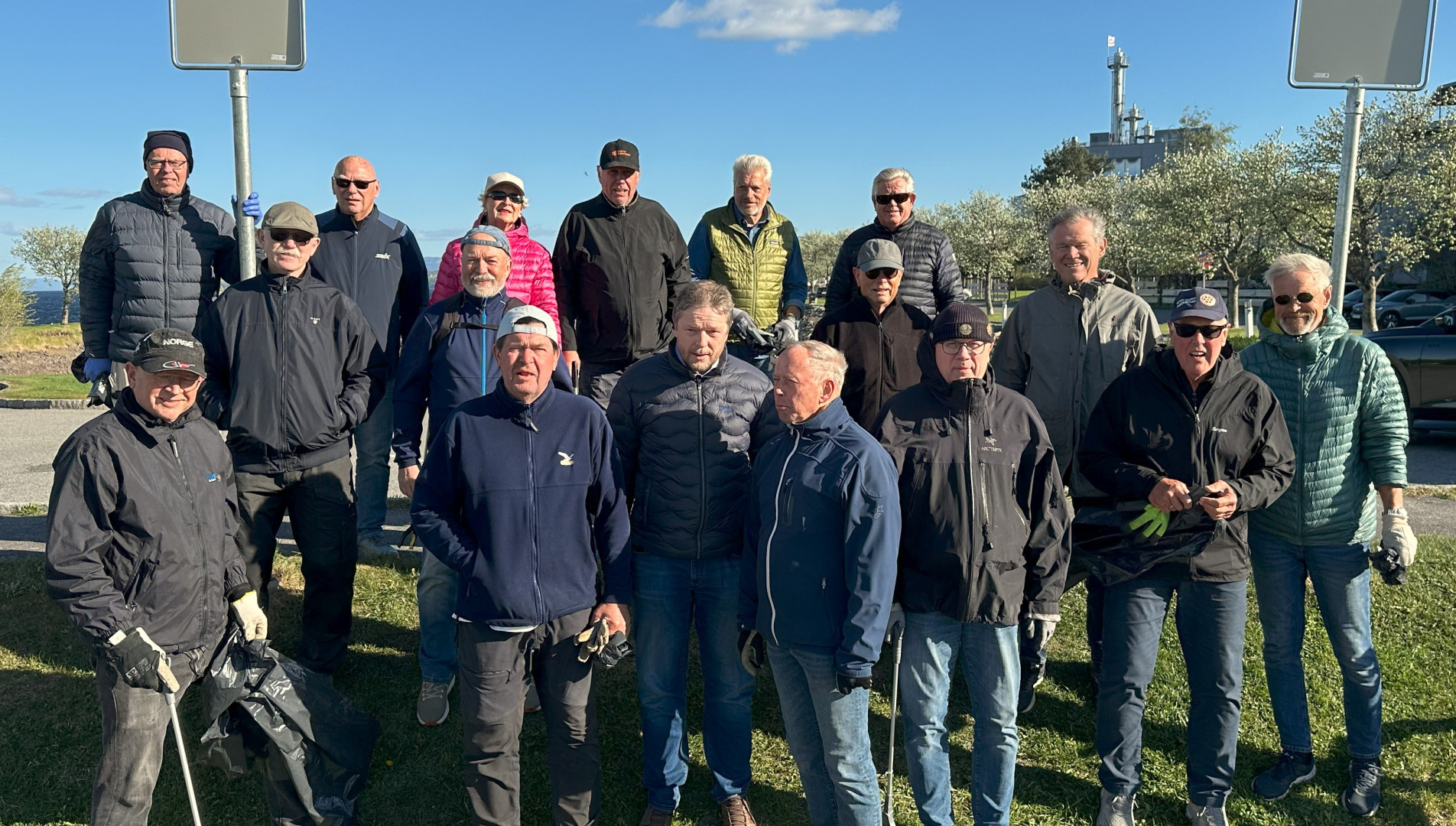 Mange medlemmer i Gjøvik Rotaryklubb stilte opp til søppelplukke-dugnaden på Mjøspromenaden!