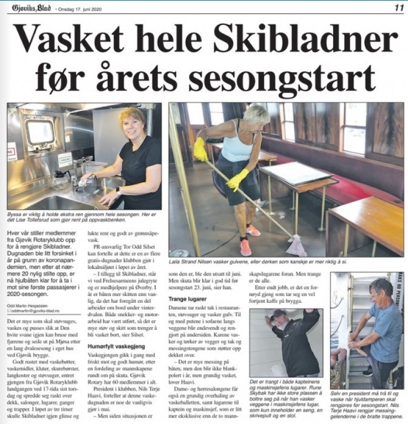 Oppslag om Gjøvik Rotaryklubbs dugnad på Skibladner