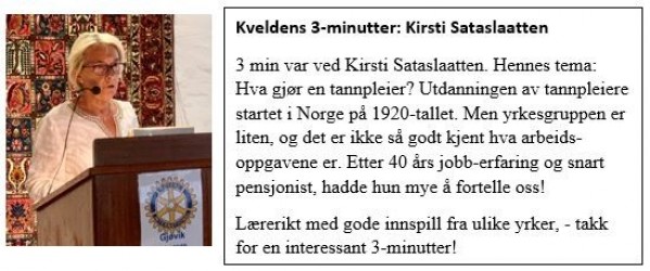 Gjøvik Rotaryklubb har innført et nytt programinnslag. Fra tid til annen skal vi få såkalte mini-egoforedrag. Medlemmer som har vært med i klubben noen år vil fortelle om sine liv. På den måten vil yngre medlemmer bli bedre kjent med seniorene.